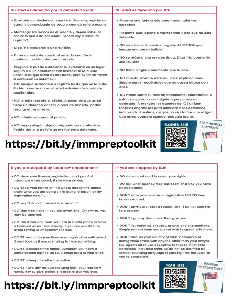 - Spread awareness. Teach others in your network to recognize ICE tactics and how to resist them.